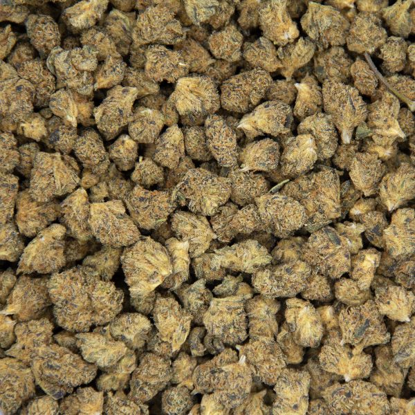 Peanut Butter, also known as “Peanut Butter Kush,” is an evenly balanced hybrid (50% indica/50% sativa) crossed with Do-Si-Dos and Mendo Breath. Nonetheless, this bud has a smell that’s said to be just like a freshly opened jar of peanut butter with just a twist of pungent kush. The flavor is said to be nutty and earthy with a creamy kush effect upon exhale that’s slightly pungent and sour. The Peanut Butter high is pretty stoney, perfect for kicking back and binging on snacks during the late afternoon. It starts with a cerebral lift that leaves you feeling euphoric and uplifted, although pretty hazy and unable to focus. As your mind falls into deep stoney introspection, your body will succumb to a heavy sedation that can leave you feeling sleepy if you toke a little too much of this tasty bud at once. With these effects and its THC level that bottoms out at about 20-24%, Peanut Butter is said to be perfect for treating conditions such as chronic pain, mood swings, appetite loss, and nausea.