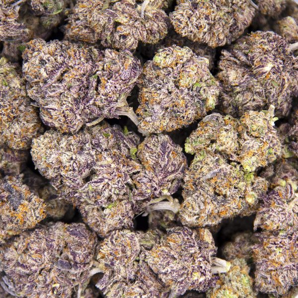 Platinum Grapes, also known simply as “Platinum Grape,” is an evenly balanced hybrid strain (50% indica/50% sativa) created through crossing the potent OG Kush Breath X Platinum Kush strains. This tasty bud offers a great flavor with potent, long-lasting effects that are said to be perfect for getting you ready for any dreaded upcoming social occasion. The taste of Platinum Grapes is much like what you’d expect, with a sugary sweet grape candy taste accented by spicy kush and flowery herbs galore. The aroma is just as delicious, with a notably fruity grape candy overtone accented by spicy herbs and flowery kush. The Platinum Grapes high will wash over you with warming waves of euphoria as soon as you exhale, lifting your spirits and leaving you feeling insanely happy. You’ll find that you’re instantly feeling more outgoing, ready to get chatting with anyone around you about just about any topic at all. Thanks to these long-lasting effects and its insanely high 28-30% average THC level, Platinum Grapes is often suggested to treat a variety of conditions including chronic stress or anxiety, PTSD, chronic pain, depression and headaches. Platinum Grapes buds have dense, heart-shaped dark olive green nugs with dark purple undertones, thick light orange hairs and chunky, vibrantly white crystal trichomes.