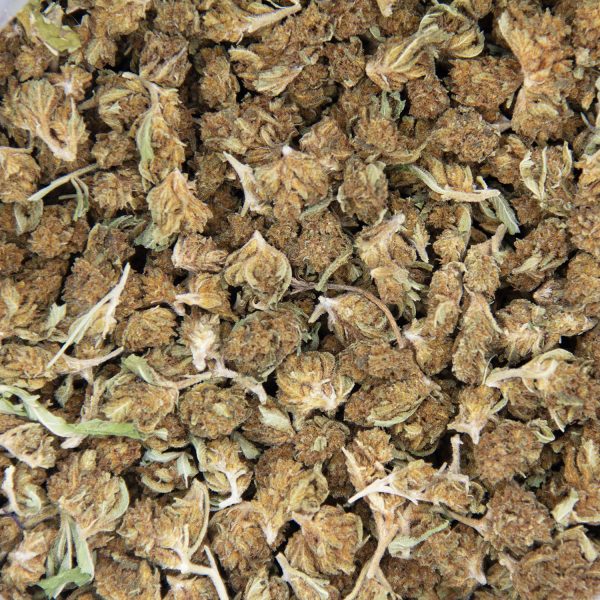**this is an older crop of greenhouse quality, popcorn-sized buds **